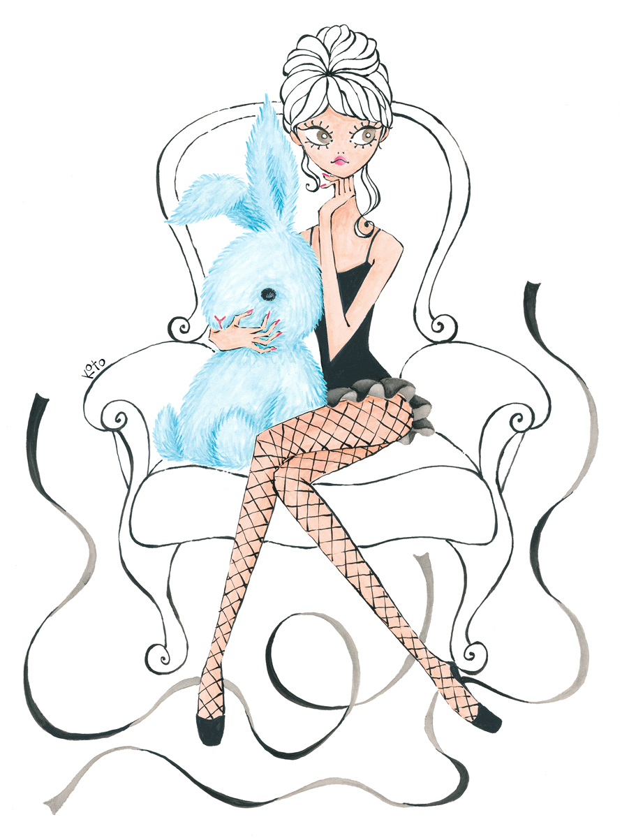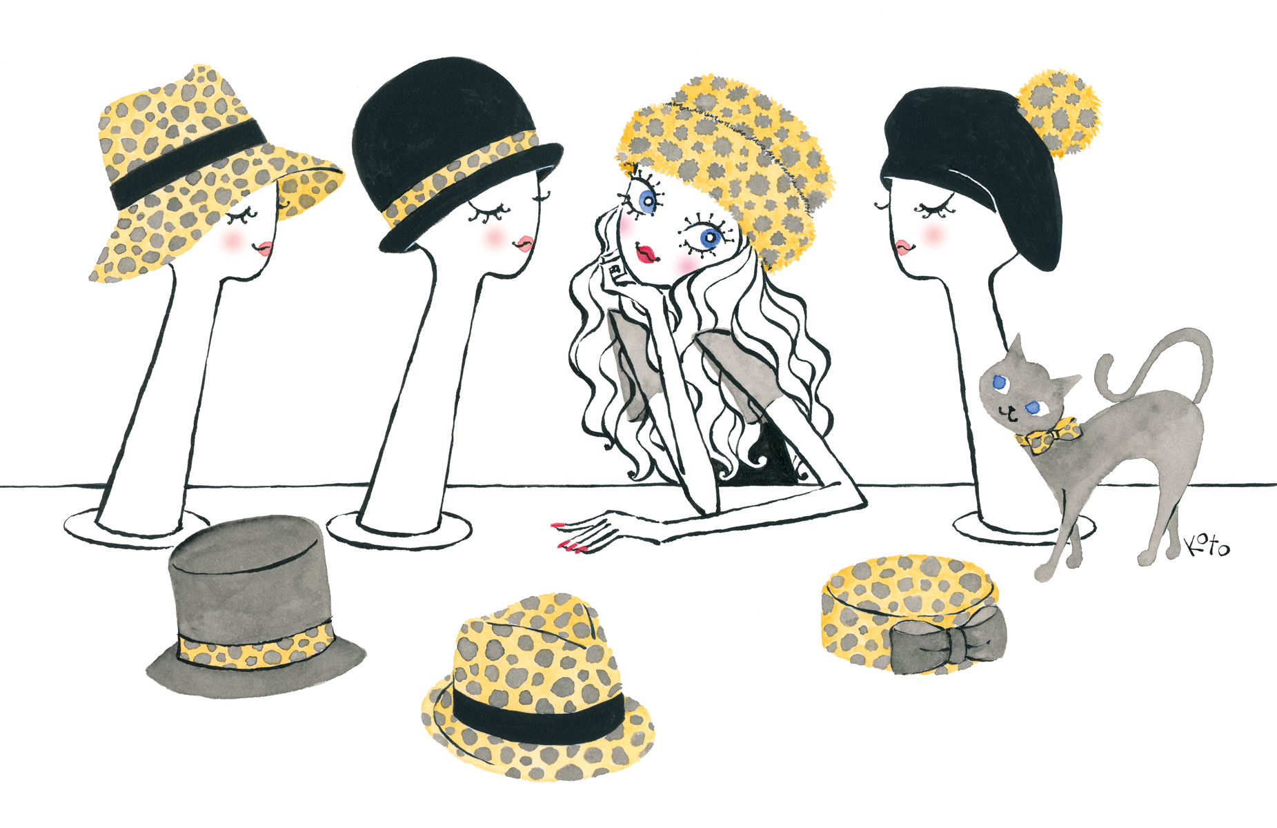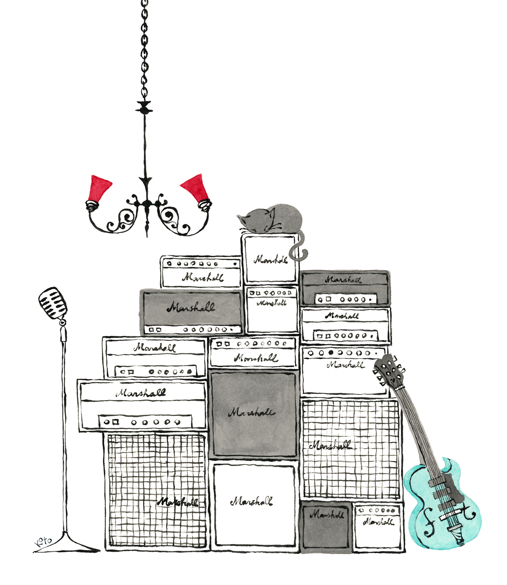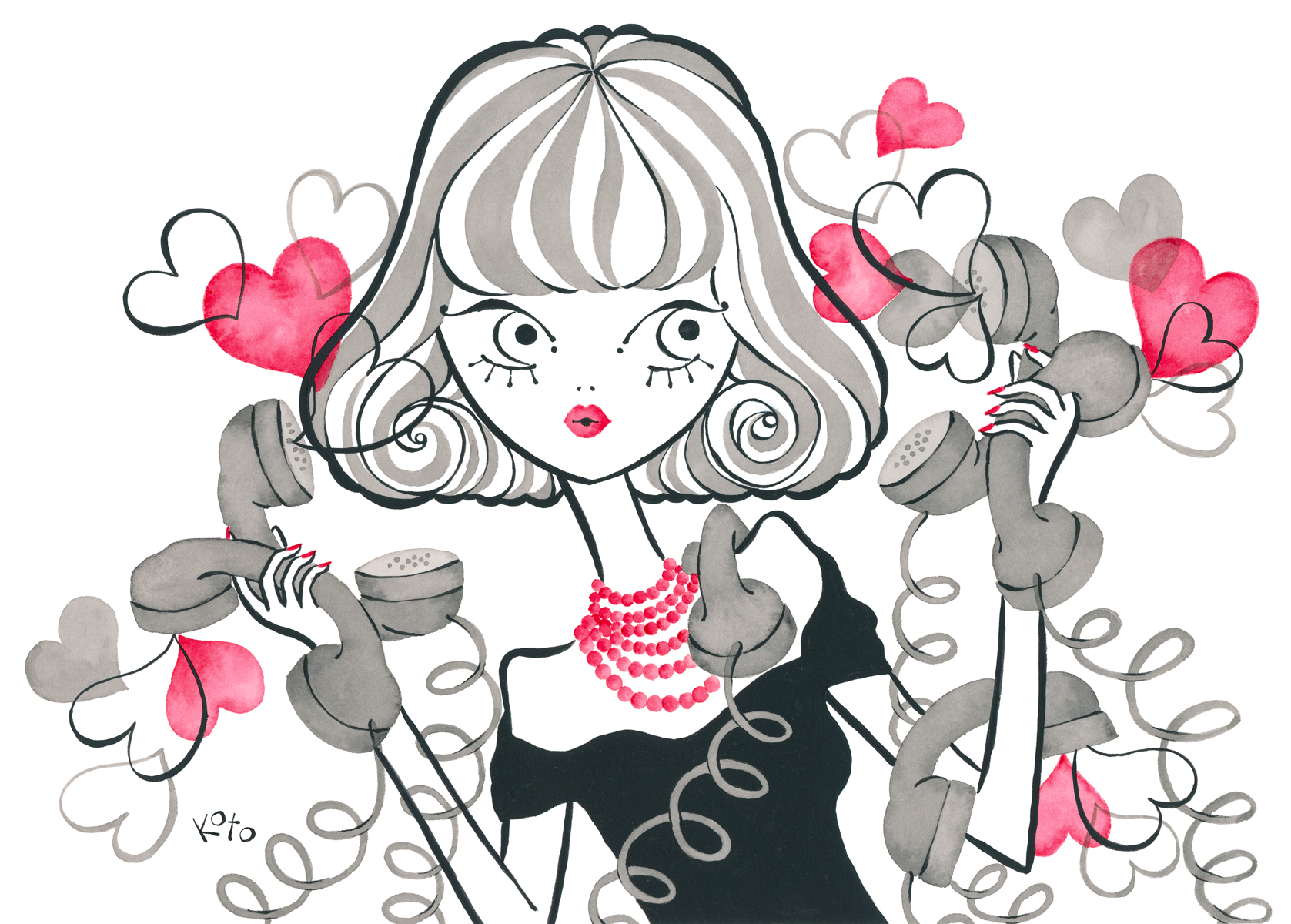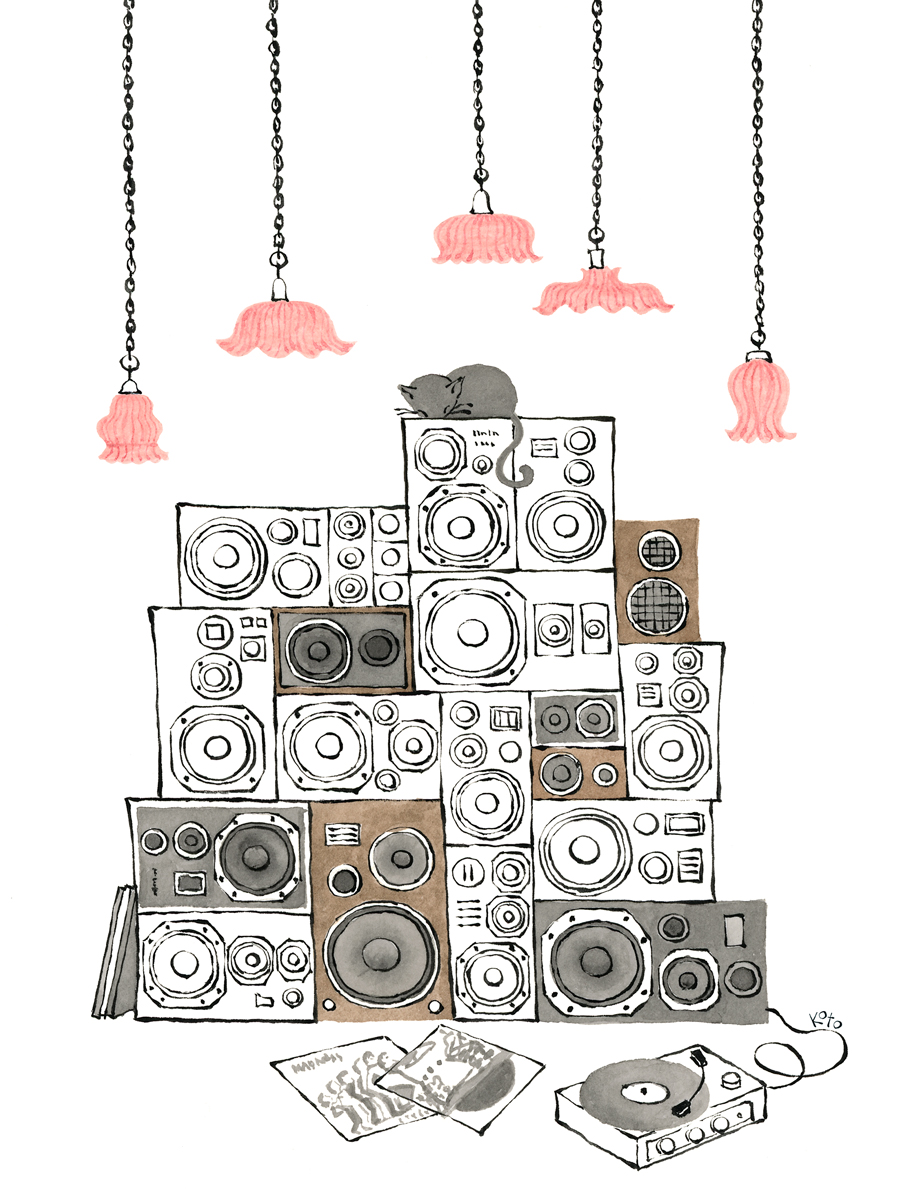 Kotono loves analog hardware such as rotary phones, stereos, and record players, which show up in her work from time to time.