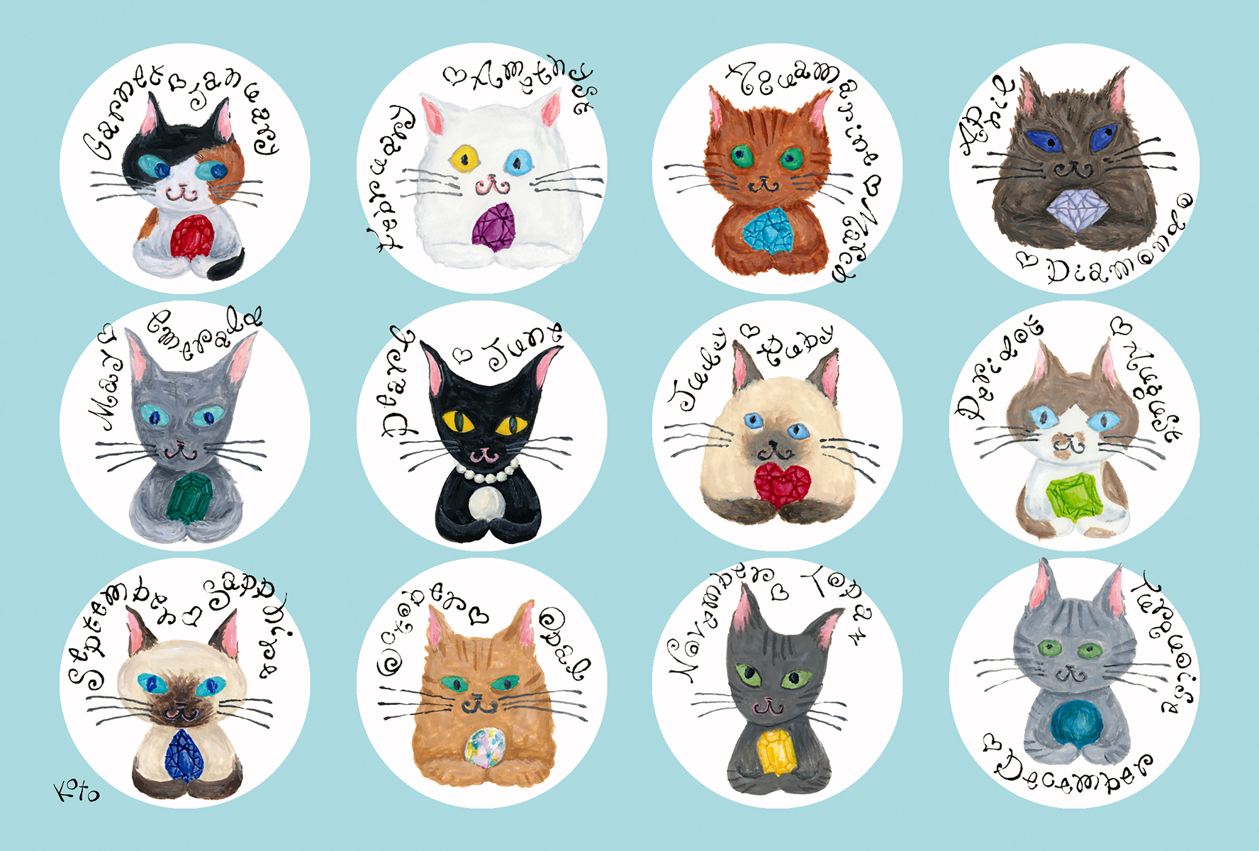 She uses acrylic and guache and creates each piece by hand.